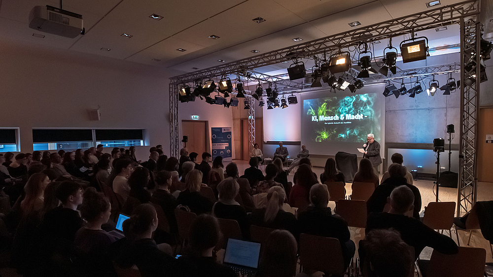 Zum Auftakt der Diskussionsreihe Dialog Kontrovers kamen am 17. März rund 130 Besucher:innen ins Studio B auf den Campus der Hochschule Mittweida. Die Reihe mit sieben Veranstaltungen in den kommenden Wochen startete mit einem Thema, das gegenwärtiger kaum sein könnte. Unter dem Titel „KI, Mensch & Macht – Die hybride Zukunft des Konflikts“ beleuchteten Experten zentrale Aspekte der aktuellen sicherheitspolitischen Entwicklung. Im Mittelpunkt stand insbesondere die Einordnung der aktuellen Ereignisse innerhalb eines sich stetig wandelnden Spannungsfeldes hybrider Konfliktlagen.