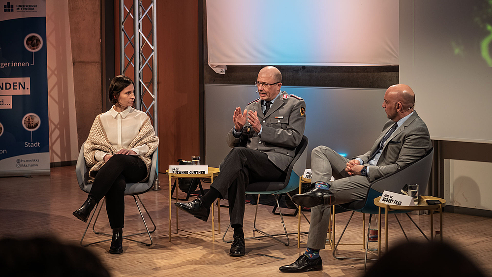 Professorin Susanne Günther moderierte den Abend, führte in das Thema ein und skizzierte zunächst die aktuelle weltpolitische Lage. Sie verwies darauf, dass sich sowohl die Zahl als auch die Art moderner Konflikte in den letzten Jahren deutlich verändert haben. Anhand aktueller Beispiele leitete sie zur zentralen Fragestellung des Abends über: Inwiefern lassen sich diese Entwicklungen als Formen hybrider Kriegführung oder hybrider Bedrohungen verstehen?